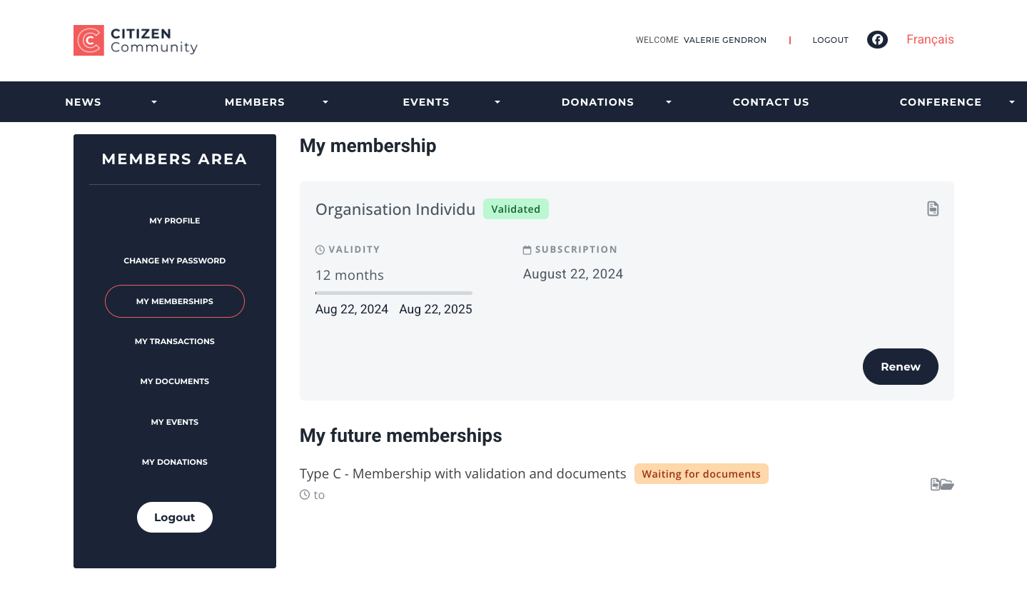 Here is an overview of the two display modes on the My Memberships page of the Members Section.