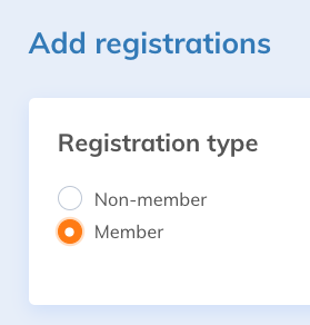 - Choose whether the participant is a member or a non-member. If they are a member, you can search for their name on your member list. Otherwise, fill out the registration form and enter their details.