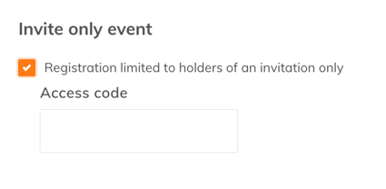 - Registration limited to holders of an invitation only - Allows creating an access code that participants must enter.