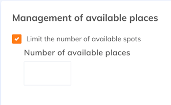 - Limit the number of available seats - Allows setting the maximum number of available seats. Once this number is reached, it will no longer be possible to register for the event.