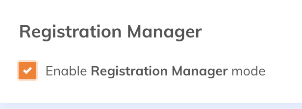 - Enable registration manager mode - Allows a manager to complete the registration without participating in the event.