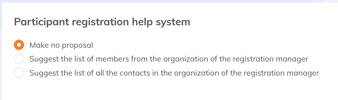 - Suggest the list of members from the organization of the registration manager - A box is added in the registration process. When the account has organizations and the representative is logged in, they can choose from the organization’s members to pre-fill the form.
