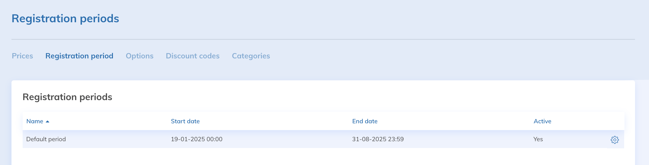 For a rate to be active and visible, it must be linked to at least one registration period. You can set registration periods in the Registration Period submenu.