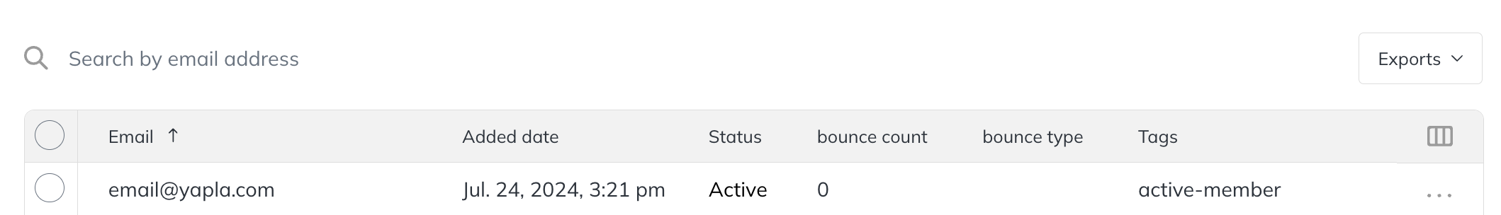 Important: Contacts with the Active status in the Status column of the Newsletters feature are not necessarily active members of Yapla. This status only indicates their activity related to your newsletter campaigns. To learn more about contact statuses in Yapla Newsletters, refer to this article.