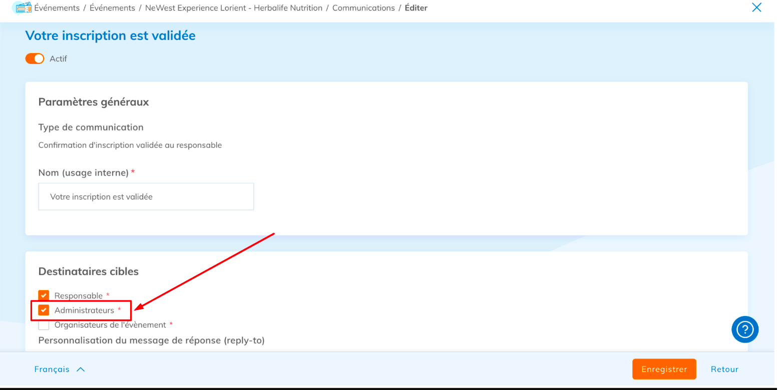 Lorsqu'une personne s'inscrit à un événement, devient adhérente ou vous fait un don, des communications automatiques s'envoient à ces personnes, mais également à vous, car vous êtes en copie de ces emails.