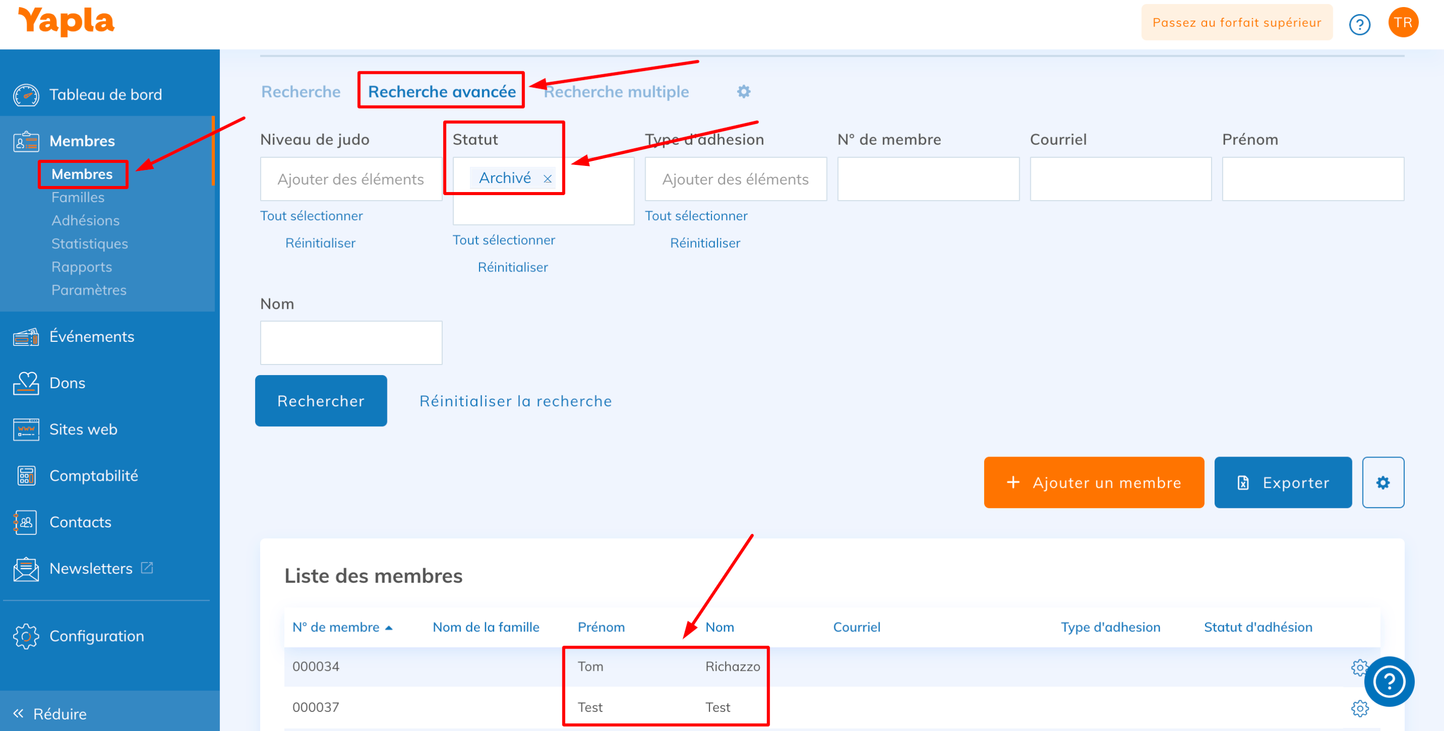 Vous avez archivé un membre afin d'alléger votre liste d'adhérents mais vous avez besoin de retrouver un ou plusieurs membres archivés ? Voici la marche à suivre pour ce faire.