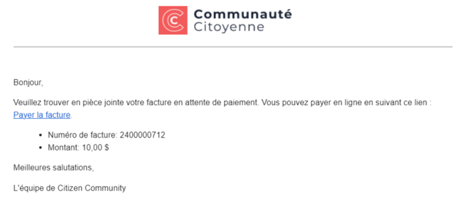 La fonction d'envoi manuel de liens de paiement offre une flexibilité pour régler toute facture En attente de paiement, pour des inscriptions à des événements. Cette fonction permet à un utilisateur de procéder au paiement sans être nécessairement connecté à un espace membre.