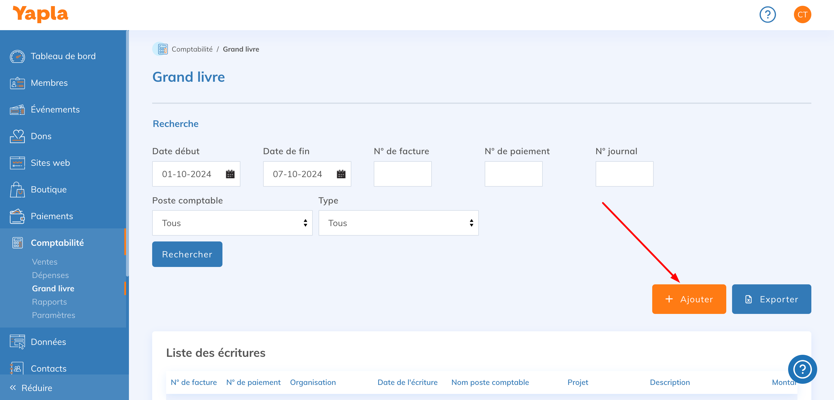 Toutefois, il est aussi possible d’ajouter des écritures comptables manuelles (par exemple : des dépenses, des recettes, des ventes) pour centraliser toutes les transactions dans la plateforme, même celles effectuées en dehors de Yapla.