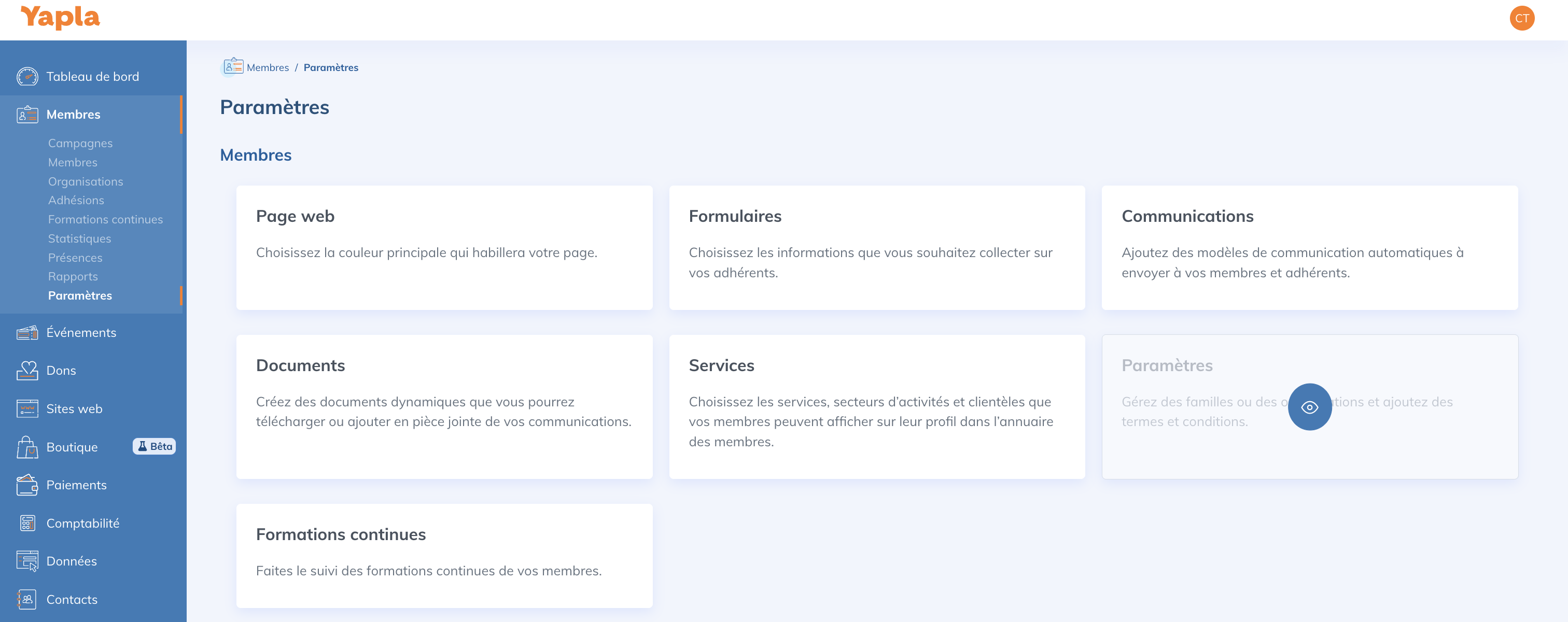 La gestion des présences via l’administration est disponible à partir de l’offre Essentiel. Pour activer la fonctionnalité, rendez-vous dans Membres > Paramètres > Paramètres dans le sous-onglet Fonction avancées.