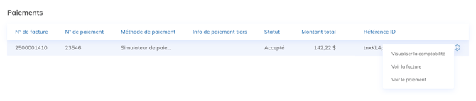 En sélectionnant une vente, vous pourrez consulter ces détails et avoir accès à la facture sous Paiement.