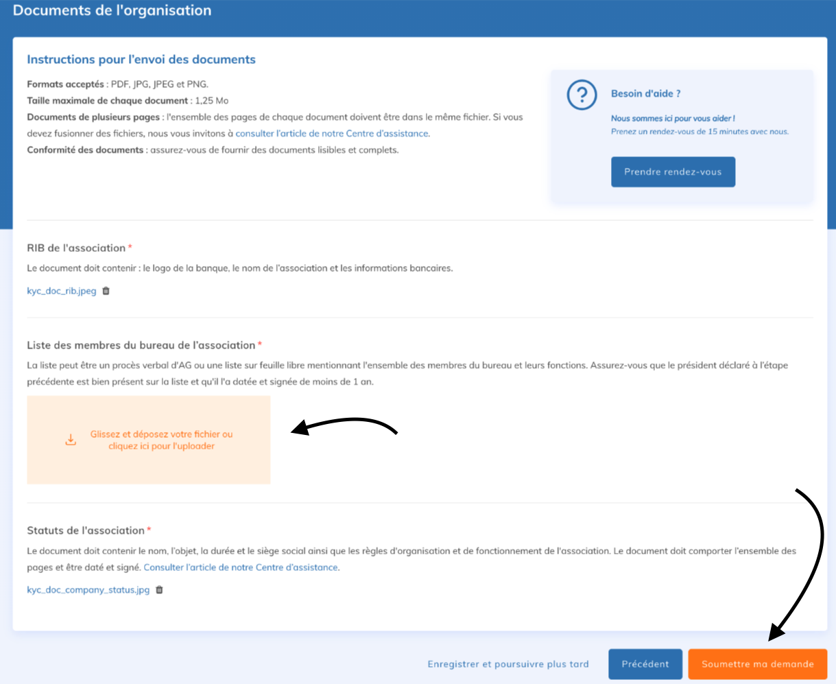 Pour aller plus loin : suivre le statut de votre demande d’authentificationVous pouvez surveiller le statut de votre demande de renouvellement en vous connectant à votre compte Yapla. Pour en savoir plus, nous vous invitons à consulter l’article suivant pour en savoir plus sur les documents à fournir et les raisons pouvant mener à leur refus : Liste des documents à fournir.
