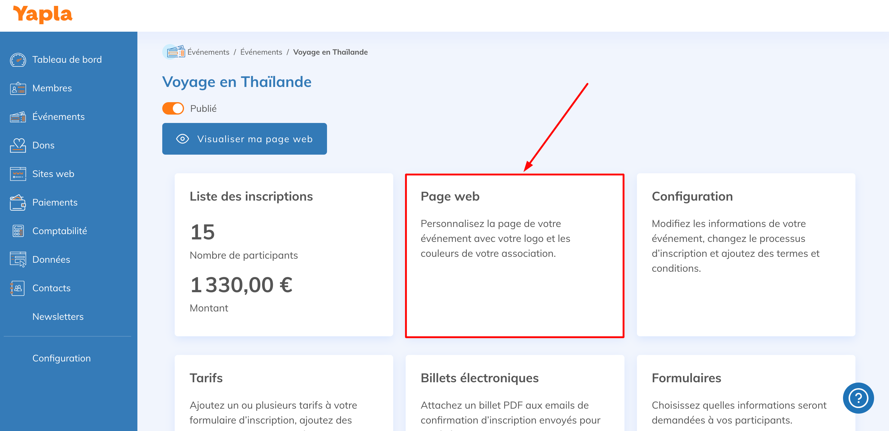 Lorsque votre événement est créée, Yapla génère automatiquement une monopage internet qui permet à vos futurs participants de s'inscrire et de payer en ligne. Cette page peut-être utile si vous n'avez pas de site internet par exemple. La monopage peut-être partagée via le lien de redirection qui va diriger vos participants vers la page de l'événement en question.