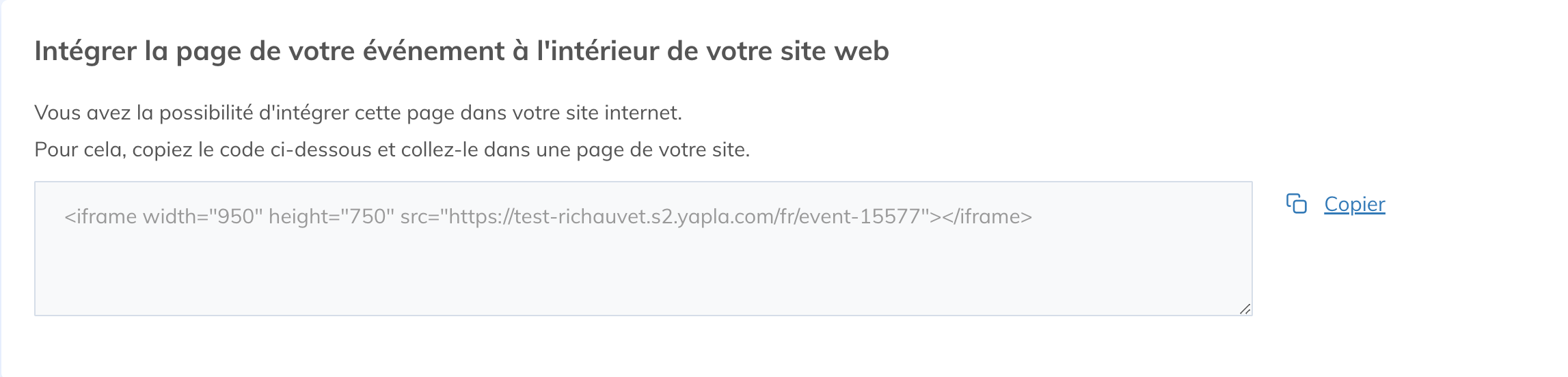 Si vous disposez d'un site internet, vous pouvez intégrer votre événement directement dans ce dernier.
