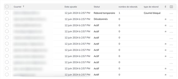 Si le contact n’a pas reçu vos e-mails, vérifiez son statut dans votre liste. Si le statut indique autre chose qu’actif, il est probable qu’il ne reçoive pas vos e-mails :