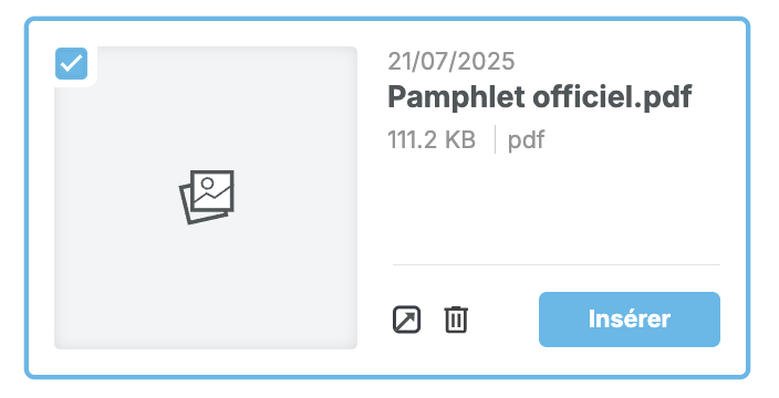 - Sélectionnez ou téléversez le document souhaité puis cliquez sur Insérer.