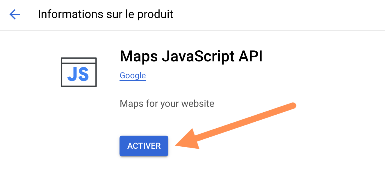 Vous serez redirigé vers le tableau de bord de cet API. Cliquez sur Activer puis confirmez le compte de facturation pour votre projet. Répétez l'opération avec Places API et Geocoding API.