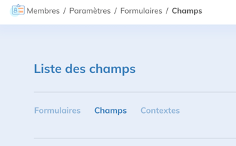 Exemple des contextes liés aux formulaires de la fonctionnalité Membres.