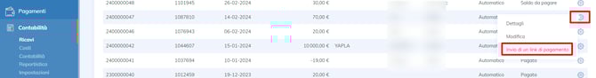 Una volta creato il carrello, puoi inviare un link di pagamento. Nella sezione Contabilità, invia il link di pagamento alla persona interessata cliccando sull'icona della rotella.