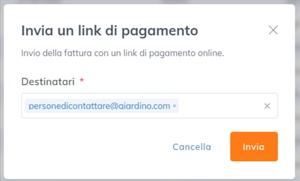 Un link di pagamento verrà quindi trasmesso al destinatario. È inoltre possibile aggiungere altri destinatari, come ad esempio gli amministratori.