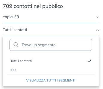 Quando invii una newsletter, puoi decidere a quali membri o gruppi di membri sarà destinata. Per fare ciò, puoi determinare dei segmenti, cioè un insieme specifico di contatti. Puoi creare questi segmenti a partire dai tuoi gruppi definiti in Yapla.