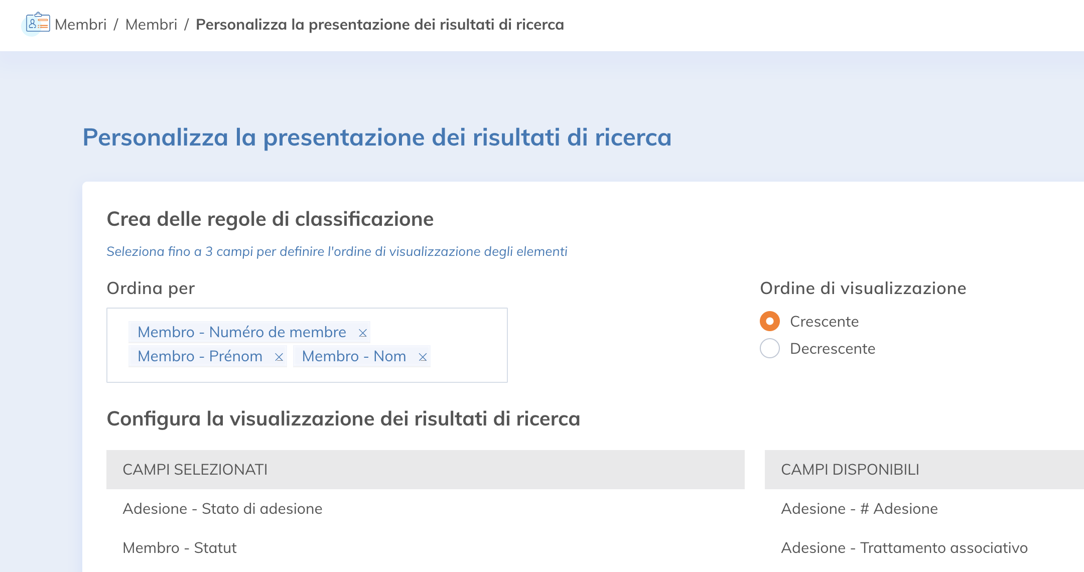- Data di iscrizione: la data in cui il socio è stato ufficialmente ammesso nell'associazione o nell'ente.