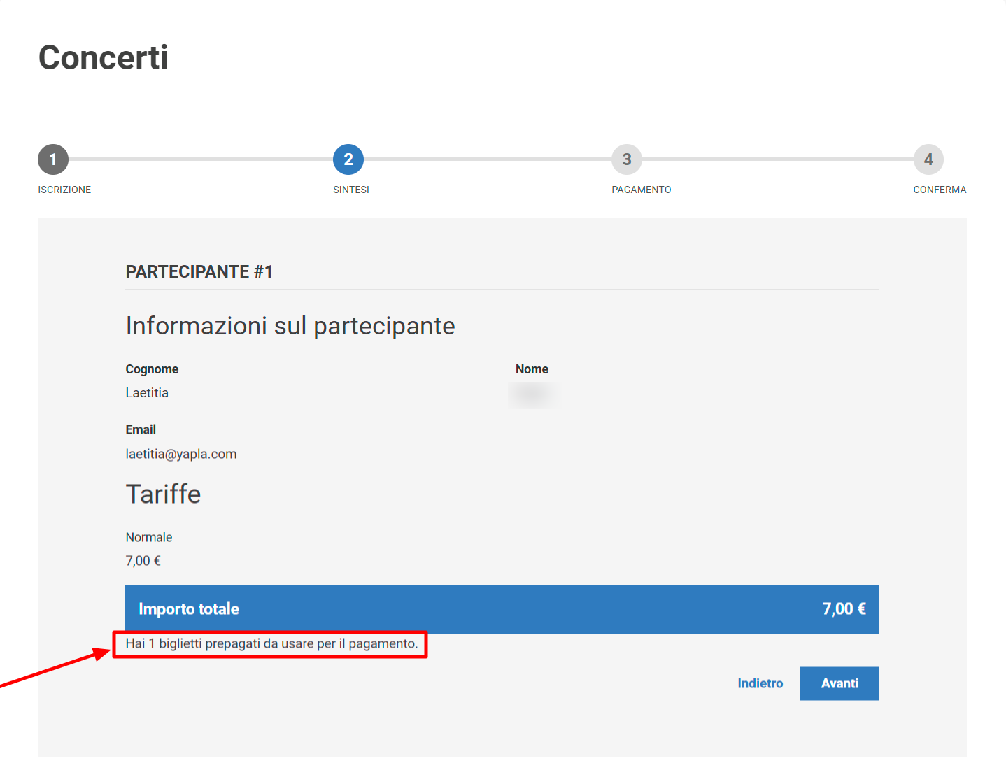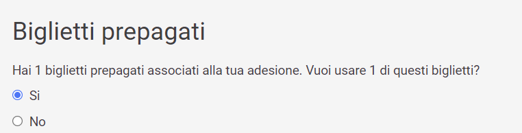 Il membro può quindi scegliere di pagare la registrazione con i biglietti.