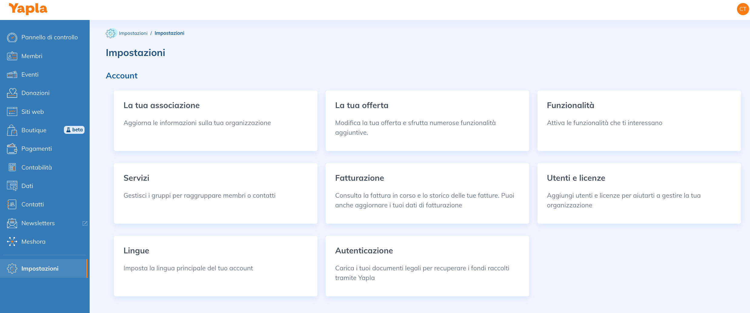 In qualità di amministratore o gestore di un account Yapla, puoi creare accessi alla piattaforma Yapla per i tuoi collaboratori e definire quali azioni e quali dati ciascuno può eseguire e visualizzare.