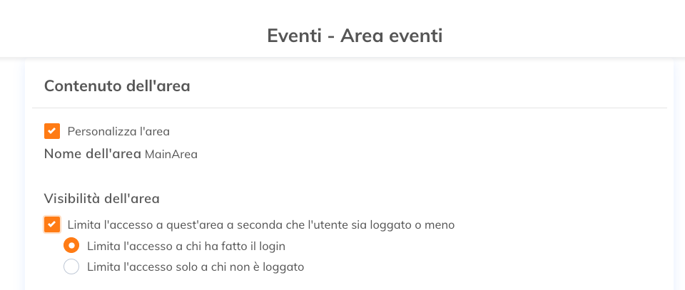- Nella prima sezione sotto Visibilità dell'area, seleziona "Limita l'accesso a questa area a seconda che l'utente sia loggato o meno", quindi decidi le opzioni di visualizzazione della pagina.
