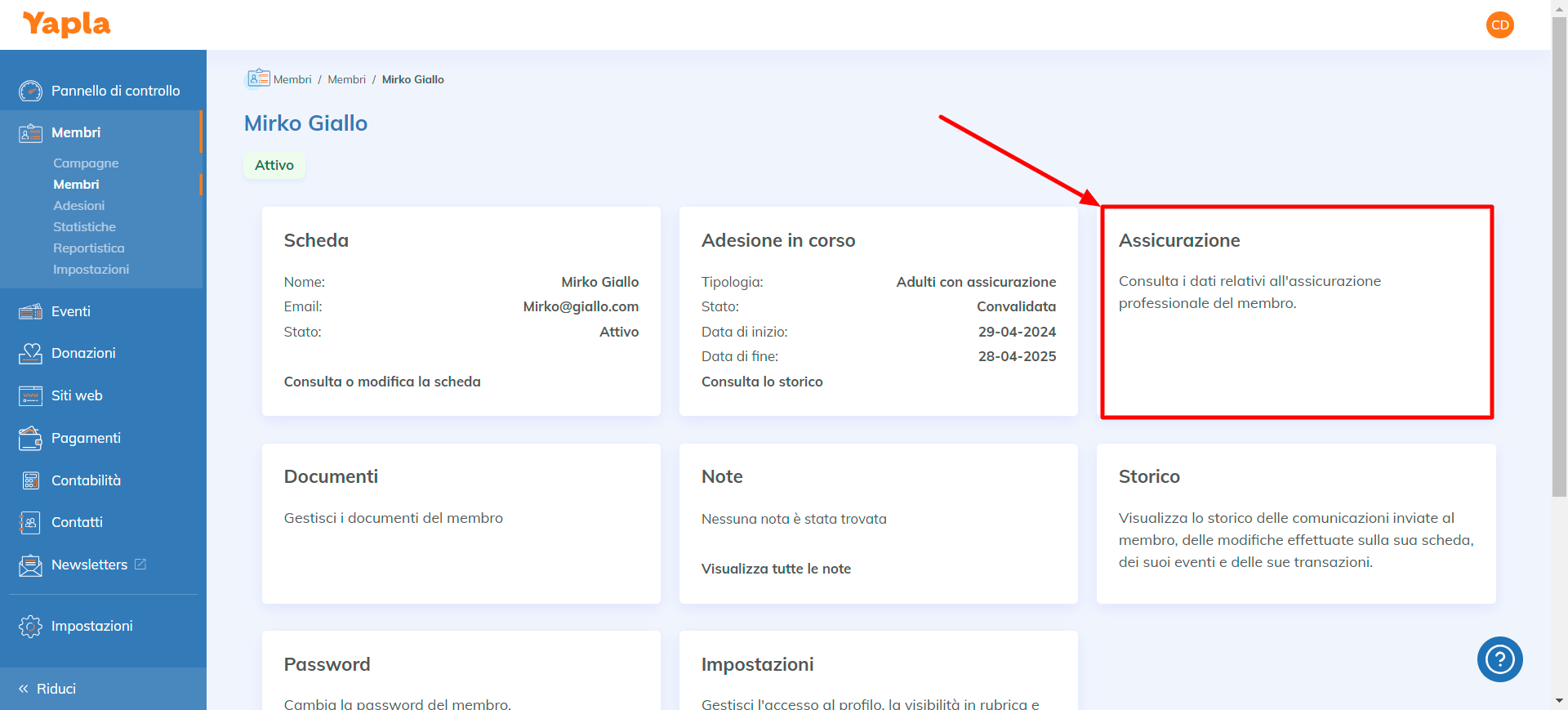 Inoltre, nel relativo modulo di adesione, è disponibile una sezione assicurativa per visualizzare i dati del modulo.