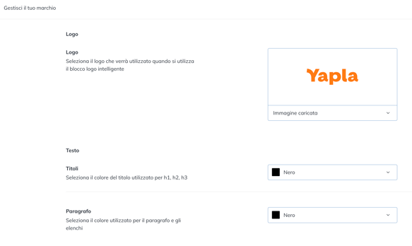 Le modifiche che farai in questa pagina si applicheranno ai modelli intelligenti esistenti e alle campagne in corso create da un modello intelligente. Una volta configurato il tuo marchio, non potrai più modificarne gli elementi nell’editor.