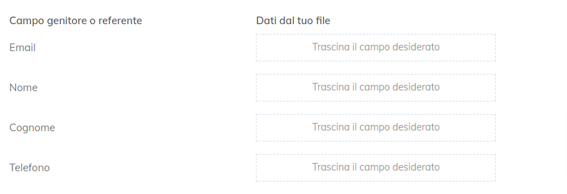 Ricorda che la persona di riferimento è un contatto collegato a un membro (utile se i membri non hanno un indirizzo email dedicato, ad esempio). Dovrai integrare colonne specifiche nella tua scheda di importazione.