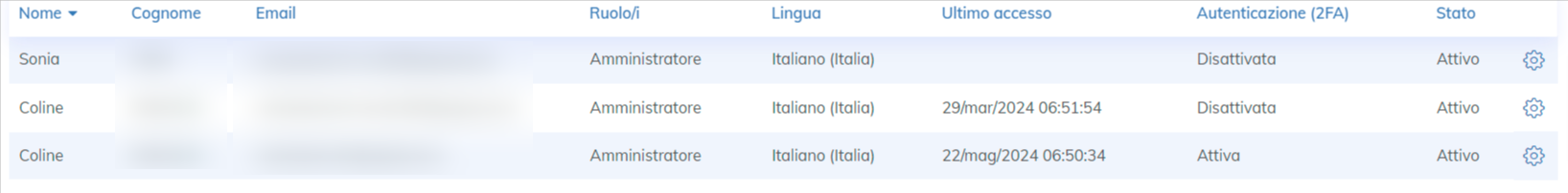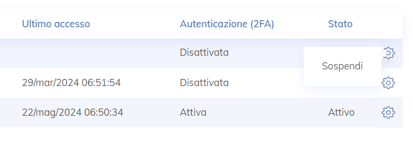 È possibile disconnettere qualsiasi account (tranne il tuo) facendo clic sulla rotella delle azioni a destra del nome.