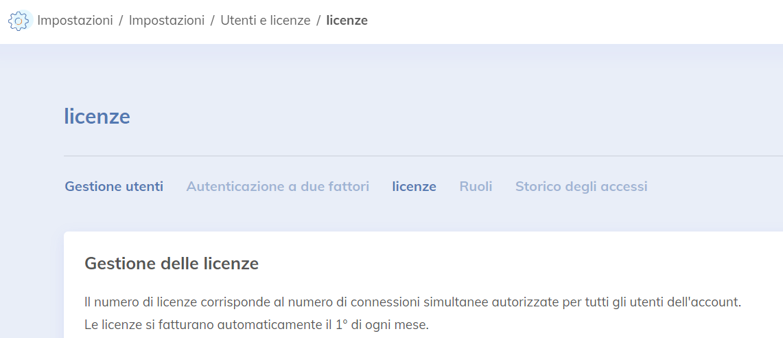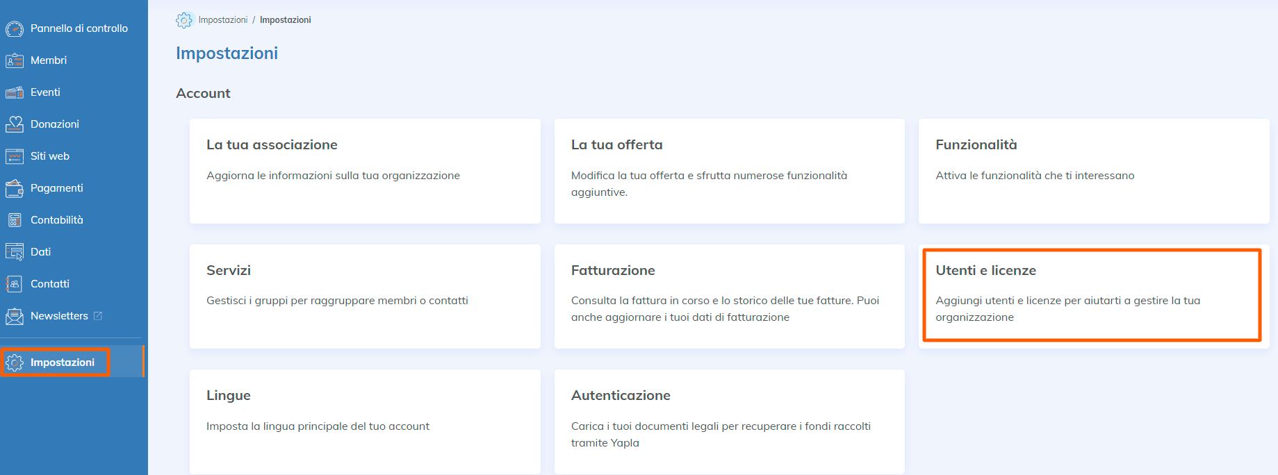 Nel menu Impostazioni, fai clic su Utenti e Licenze.